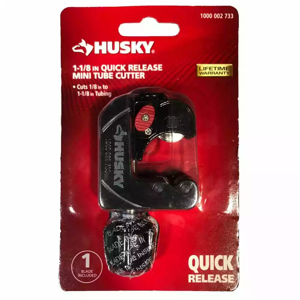 Use the Husky 1-1/8 in. Quick Release Mini Tube Cutter to make clean, square cuts on copper, brass, aluminum and thin-wall conduit. This tool features a convenient quick adjustment button to facilitate fast size adjustments to various sizes of tubing. An extra blade is included and can be stored in the knob. Built to last and backed by the Husky lifetime warranty for satisfaction guaranteed.