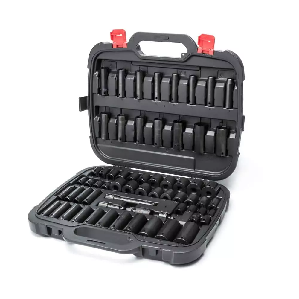 - Set includes one 1/2 in. impact extension bars one 1/2 in. to 3/8 in. drive impact adapter one 1/2 in. drive impact universal joint, 30 standard impact sockets – SAE: 3/8 in. to 1-5/16 in. and metric: 13 mm to 27 mm 30 deep impact sockets: SAE – 3/8 in. to 1-5/16 in. and metric – 13 mm to 27 mm