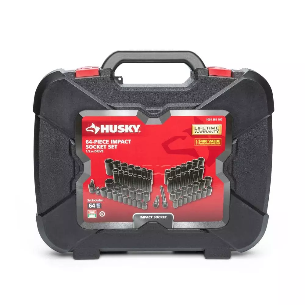 This is Husky’s most complete and widest selection of 1/2 in. drive Impact Sockets in 1 set all conveniently stored in single, easy to transport case. The 6-point style of socket helps to reduce the chance of rounding fasteners under high-torque applications and feature chamfered lead-ins for quick and easy placement onto fasteners. The industrial grade black oxide finish provides added durability and prevents corrosion.