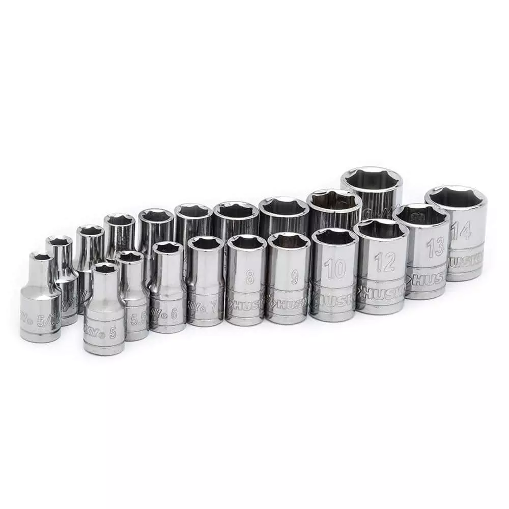 The Husky 50-piece 1/4 in. Drive SAE/Metric Socket Set is forged from Chrome Alloy steel for outstanding durability and strength. The 43 different sockets and 4 bit sockets will allow you to tackle a wide range of basic fastening or repair projects. This Husky 50-piece set is ideal for any garage or your home workshop.