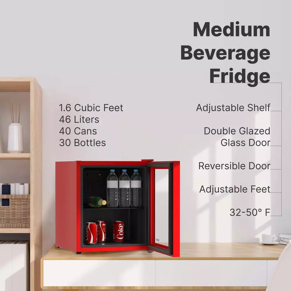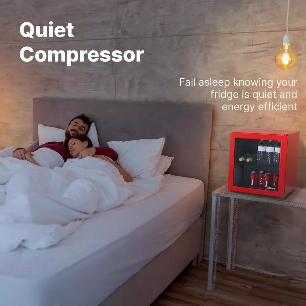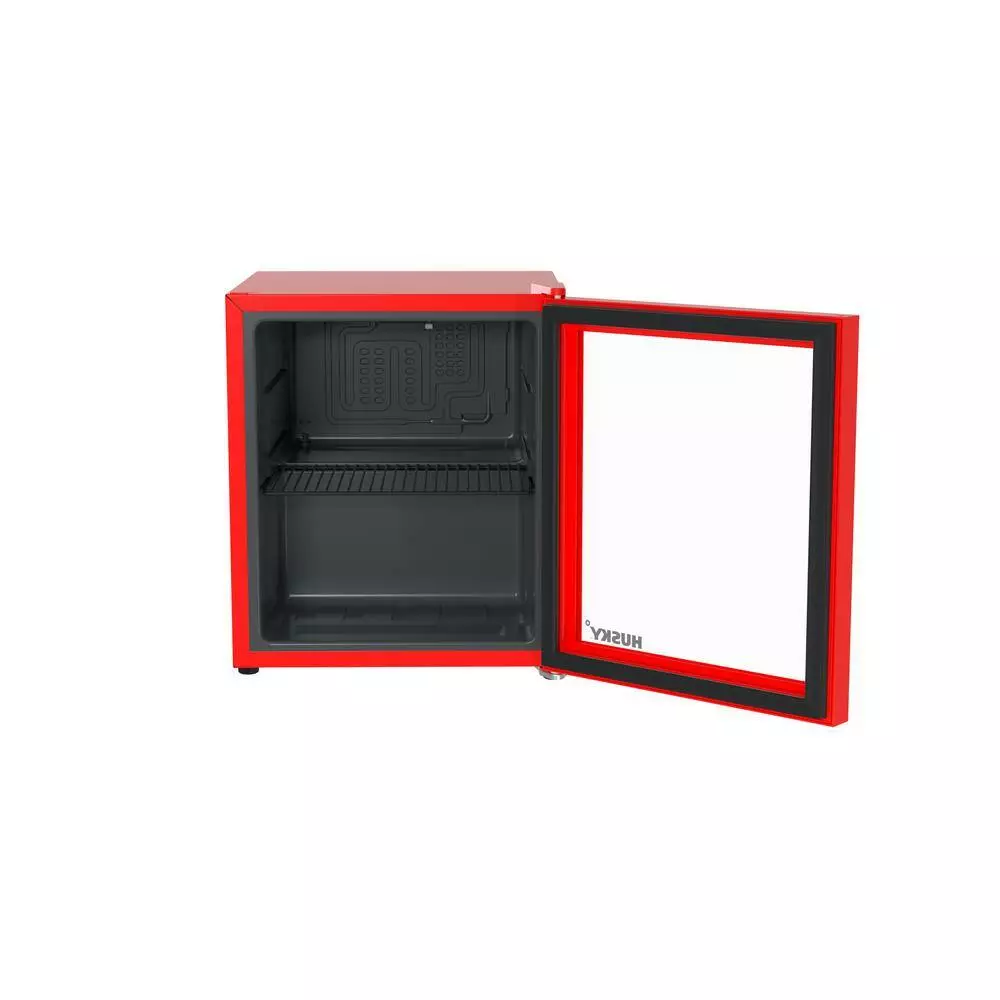 Husky 1.5 Cu. ft. 40-Can Glass Door Freestanding Countertop Quiet Mini Fridge with Reversible Door without Freezer (Red)