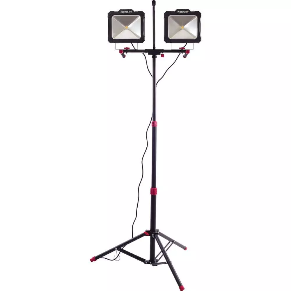 The Husky 10,000-Lumen Twin Head LED Work Light is versatile and can be used with or without the tripod. It provides ample lighting with its long-lasting LED bulb. Once detached from the tripod, its easy grip handle also allows it to be transported with ease.