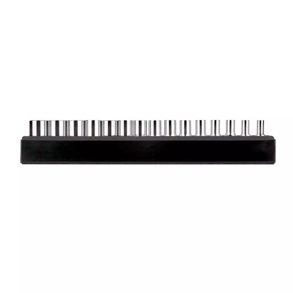 Store and organize your deep sockets with the Husky Magnetic 3/8 in. and 1/2 in. Drive Deep Socket Tray. This socket organizer can accommodate both SAE and metric 3/8 in. and 1/2 in. sockets up to 1-1/16 in. or 27 mm. It can even hold up to 11-pieces of the larger 1/2 in. drive impact sockets in either SAE/standard or metric sizes. The tray is constructed of durable steel and a strong Neodymium magnetic base which will work through most drawer liners.