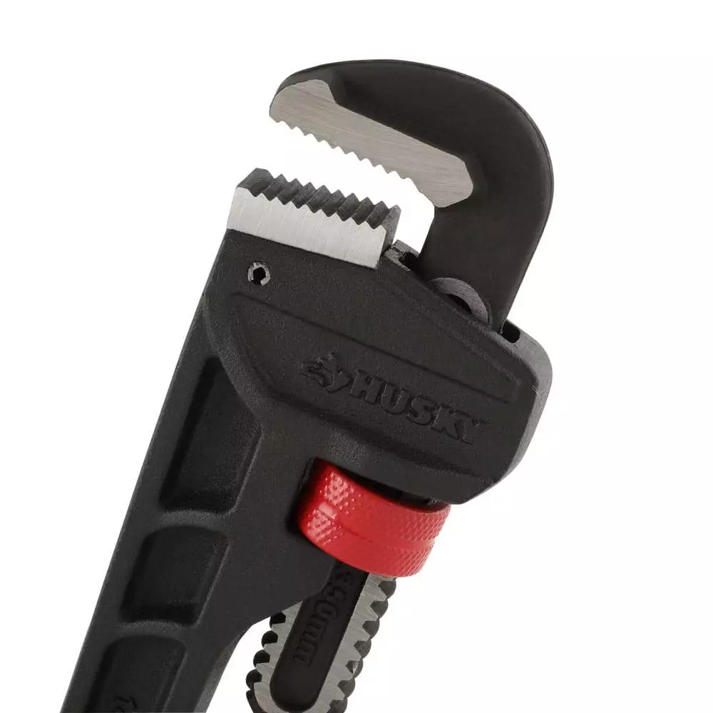 Husky’s 14 in. Heavy-Duty Straight Pipe Wrench is a must-have for your plumbing tool box. The high-quality, hot-forged steel jaws easily adjust and clamp to pipes up to 1 in. Dia. The Heavy-Duty Straight Wrench features adjustable jaws that perform great in a variety of plumbing repair jobs. It features a durable cast iron body and i-beam handle for superior durability. Working in tight spaces is easy with its trapezoid grip. Built to last and backed by the Husky lifetime warranty.
