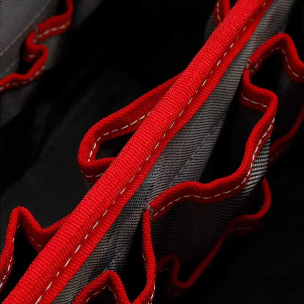 - 12 external pockets, 25 internal pockets with elastic straps to secure tools