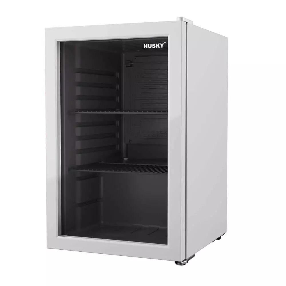 A convenient indoor bar fridge for storing and chilling your drinks with all the high-quality features you’d expect from Husky. The compact size makes it ideal for any setting, with the capacity to hold up to 60 cans of soft drink, beer, or any other beverage you desire. This comes with a simple, unbranded white exterior, making it suitable for any home, retail, business, or hotel setting and one-off custom designs. Depending on the humidity levels in your space, this bar fridge can form condensation on the door. If this product is installed in a room with a high humidity level, it is worth considering a bar fridge with a solid door or a heated glass door to prevent this condensation build-up. Available in red, black, and white.