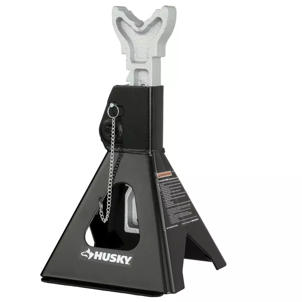 The Husky 2-Ton Hydraulic Trolley Floor Jack is great for use on smaller vehicles. It will lift up to 2-Ton (4,000 lbs.) with minimum lifting height of 5 in. to a maximum lifting height of 13 in. The removable handle and the carrying handle on the 2-ton hydraulic trolley jack makes it easy for storage. This jack is ideal for quick tire change. This car jack is the perfect car accessory to add to your Husky automotive and tool collection. The Husky 3-Ton Jack Stand pair is designed to lift up to 6,000 lbs. (3-tons) with a heavy-duty steel base with anti-sink feet for added durability and safety. This pair of jack stands have an extension range from 12 in. up to 17.5 in. and are equipped with a locking pin for added safety. This jack stand car accessory can be used with an SUV, light truck and standard automobiles. The Husky 3-Ton Jack Stand pair works with any Husky automotive floor jack, found at the Home Depot.