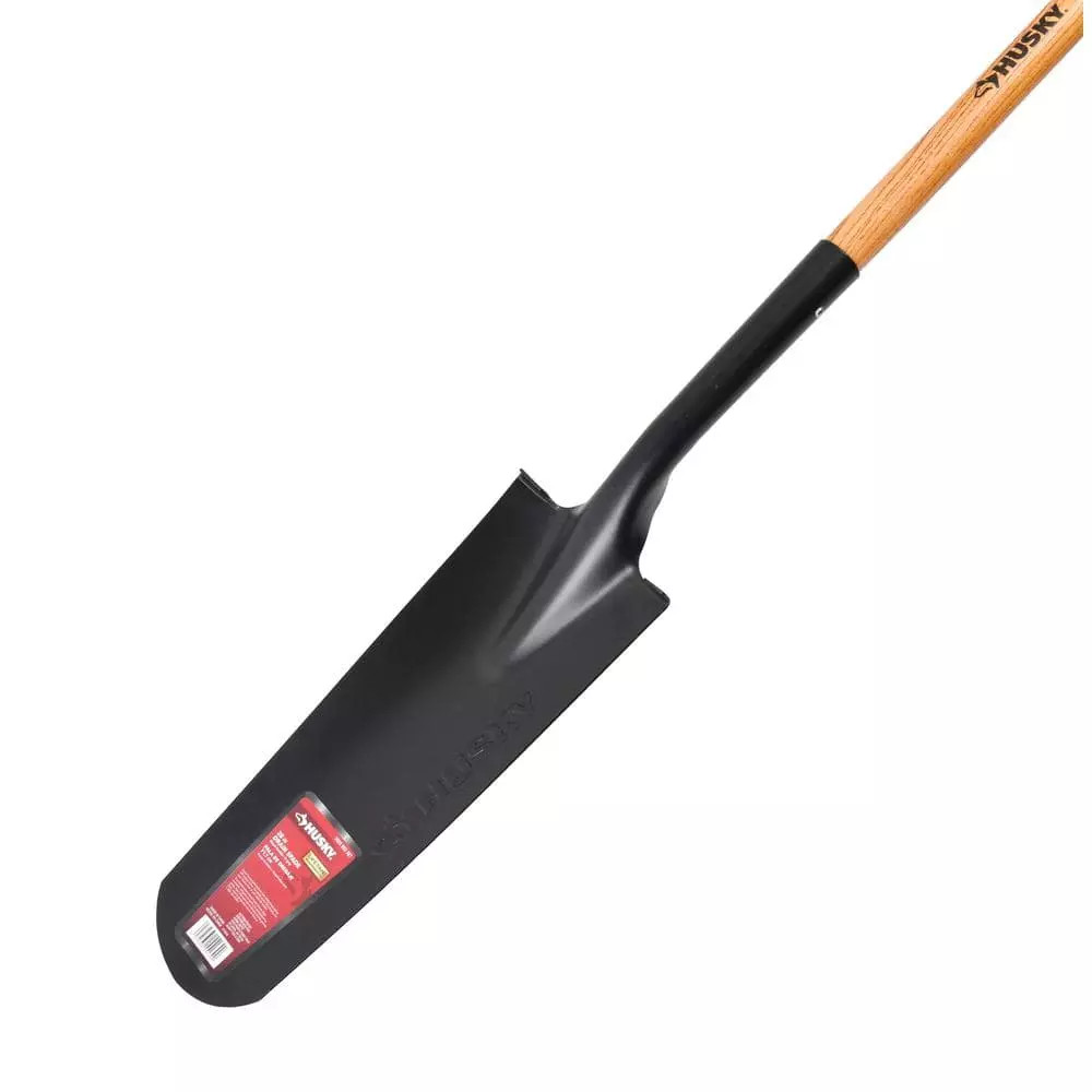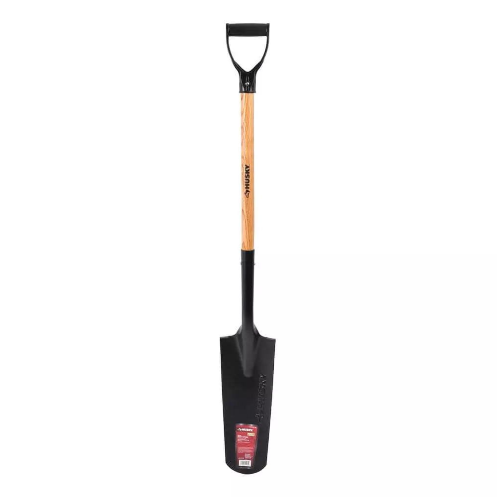 Husky 28 in. D-Grip short Wood Handle Steel Drain Spade