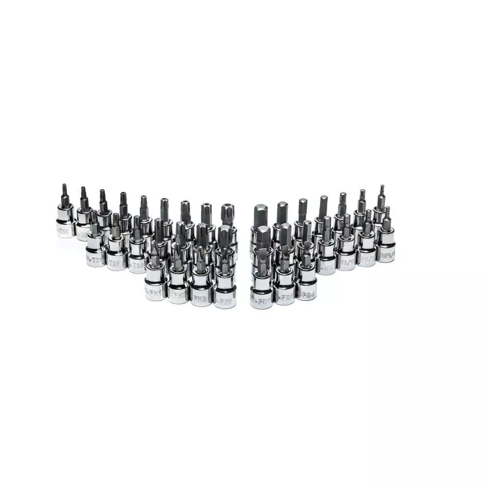 - Set includes 3 slotted: 4 mm, 5 mm, 6 mm three Philips: #1, #2, #3 ine pozi: #2 fourtine hex: SAE – 1/8 in., 5/32 in., 3/16 in., 7/32 in., 1/4 in., 5/16 in., 3/8 in. and metric – 3 mm, 4 mm, 5 mm, 6 mm, 7 mm, 8 mm, 10 mm seven Torx: T20, T27, T30, T40, T45, T50, T55 nine tamper Torx: T15, T20, T25, T27, T30, T40, T45, T50, T55