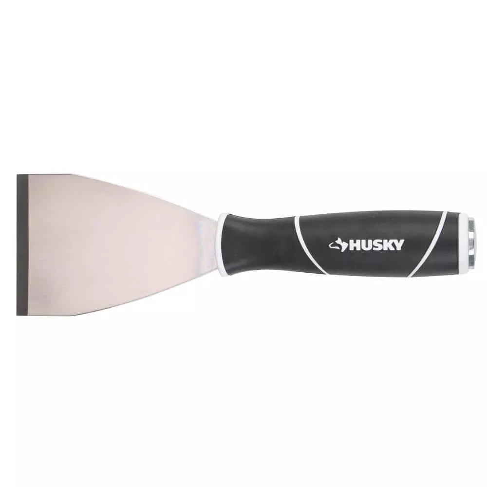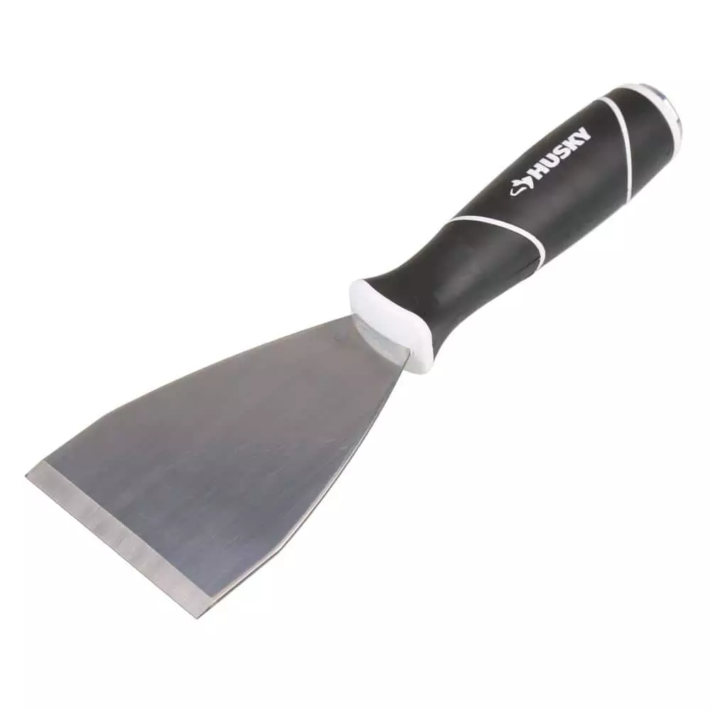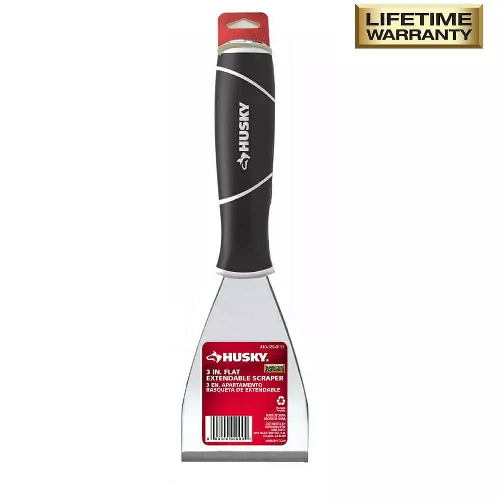 The Husky 3 in. Flat Extendable Scraper features a heavy-duty straight blade made of high-quality stainless steel that resists rust and corrosion. It is sturdy and thick enough to withstand extra-tough scraping jobs. This versatile scraper has a soft-grip handle that can be lengthened using an extension pole. Its screw-out hammer end ensures convenience while working on small hammering jobs.