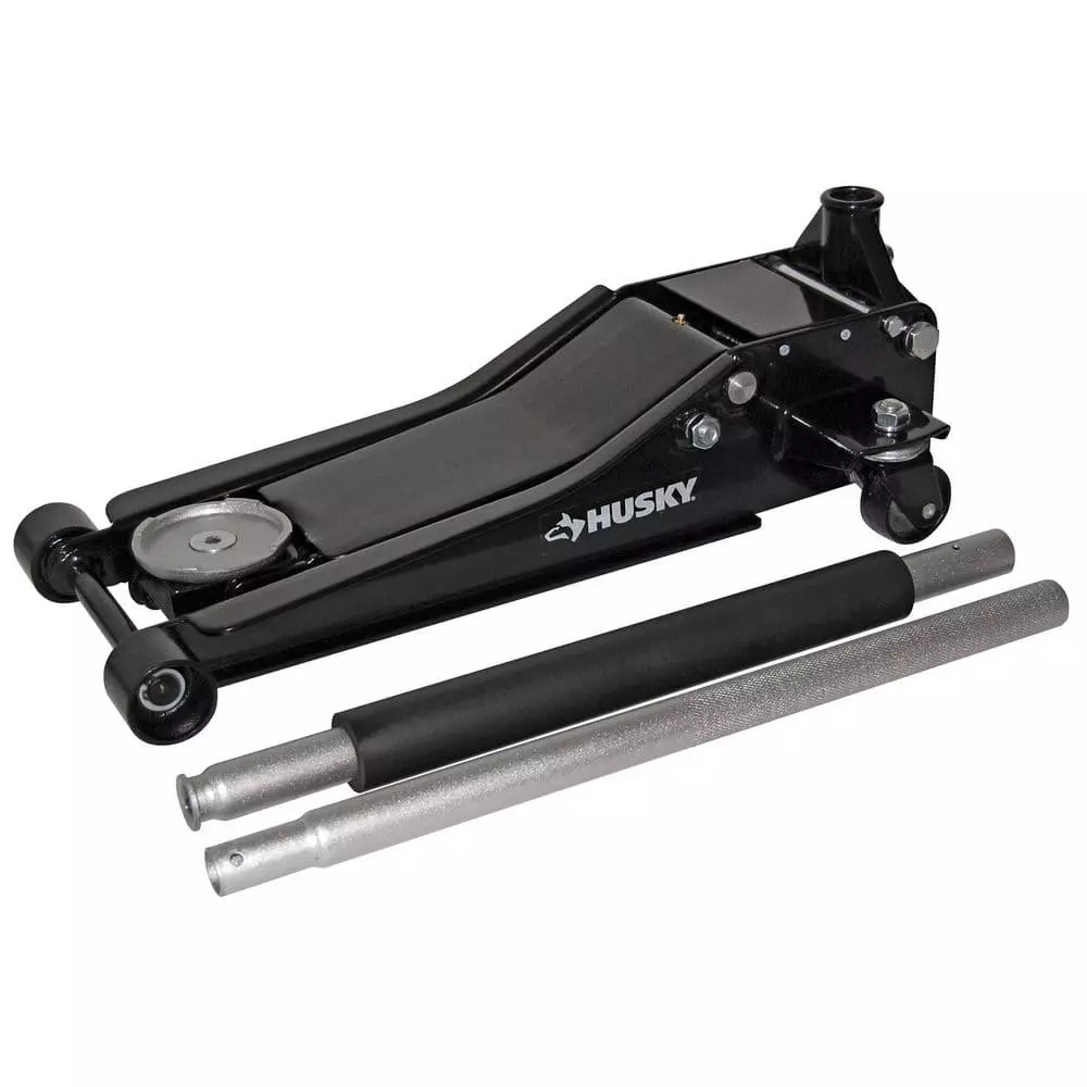 Husky 3-Ton Low Profile Floor Jack with Quick Lift with 12 in. 4 Pocket Zippered Tool Bag