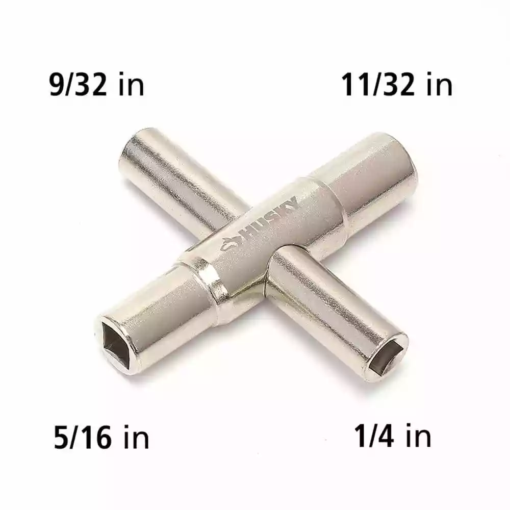 Husky’s 4-way Sillcock key wrench has multiple stems to service the majority of sillcock sizes, including 1/4 in., 9/32 in., 5/16 in. and 11/32 in. Made of durable steel for a long lifespan, the 4-way Sillcock key is suited for opening and closing sillcock or spigots. Use in place of sillcock handles. Built to last and backed by the Husky lifetime warranty.