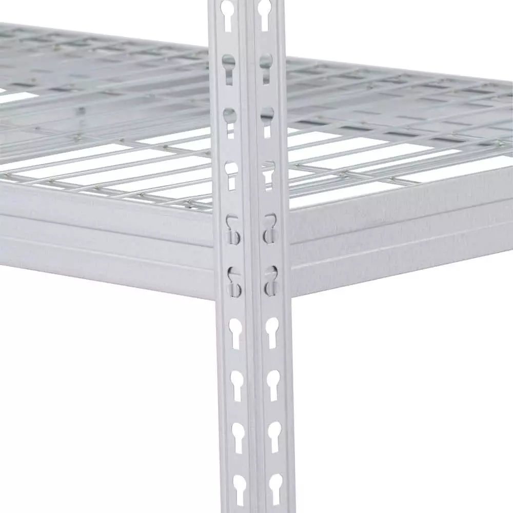 This innovative metal shelving features wire mesh panels. The shelving unit is easy to install due to its unique clipsing system. It has an industrial look and can be used in many rooms of your home. with 5 shelves, this Husky provides lots of storage space, and each heavy duty shelf can support up to 1000 lbs. when the load is evenly distributed. Husky steel shelving features a Lifetime Warranty.