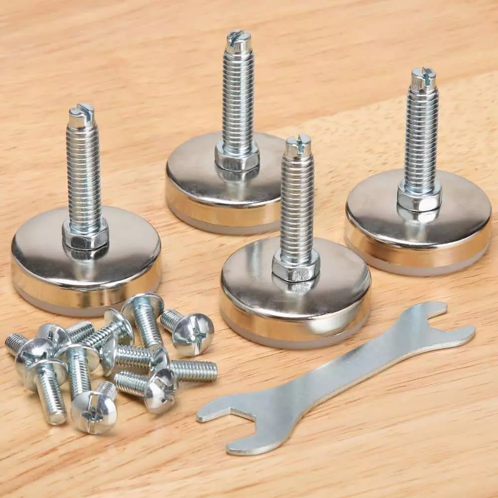 - 4 leveling feet can be installed to use the table as stationary work area