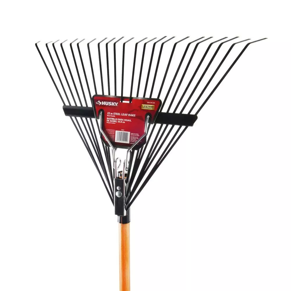22-Tine steel leaf rake is used for clearing leaves and debris from lawns and paved surfaces such as driveways and sidewalks. This rake can also be used for pulling out thatch for a healthier lawn. The steel head is bolted to the handle with a strong coil spring for a secure connection and smooth raking action. Strongly secured steel tines stand up to rigorous raking. Flexible and strong coil spring provides smooth raking action.