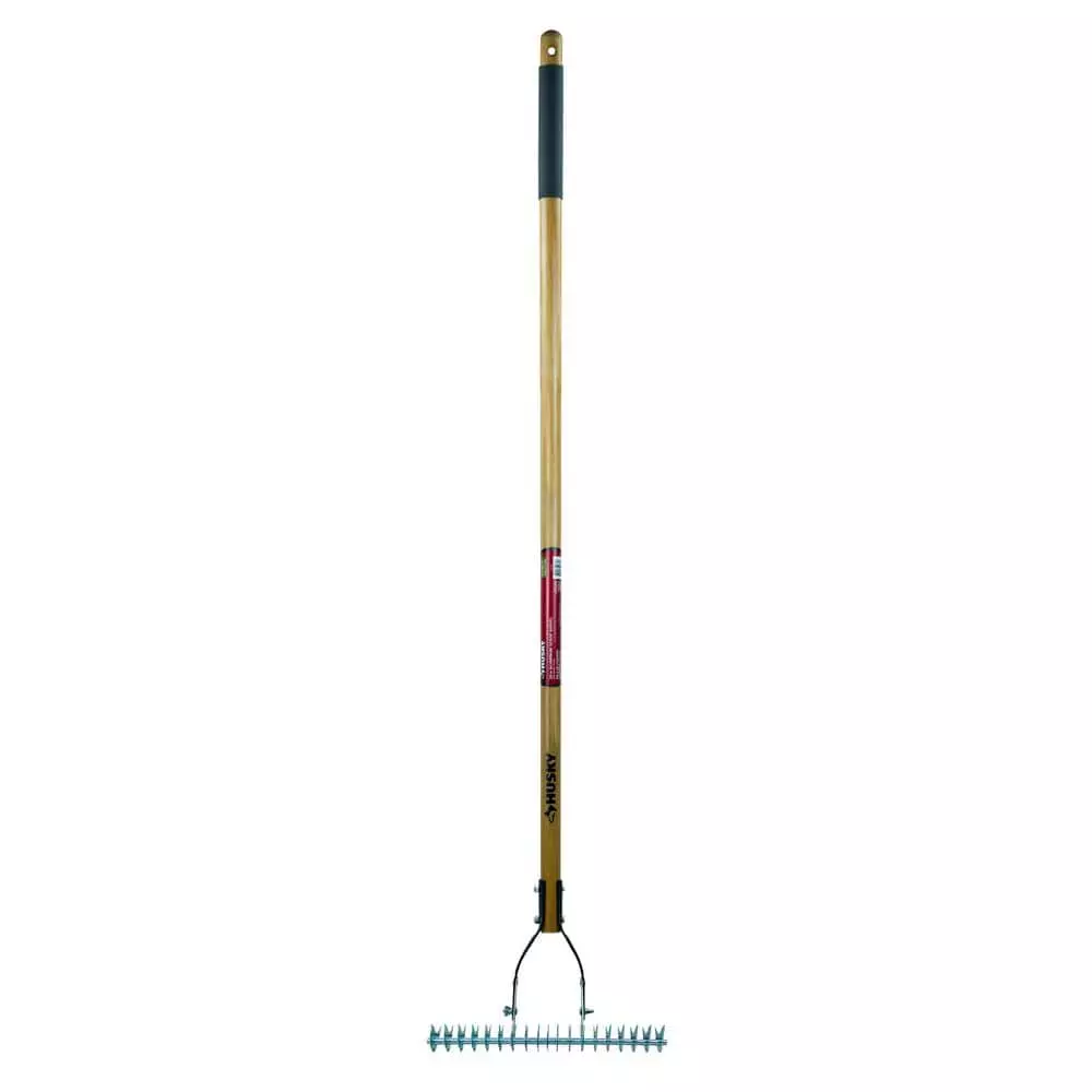 The thatching rake is an all-purpose lawn rake. Its curved tines were designed to clear dead grass clippings from the lawn. This will allow sunshine, air, water and fertilizers in to keep the grass healthy.