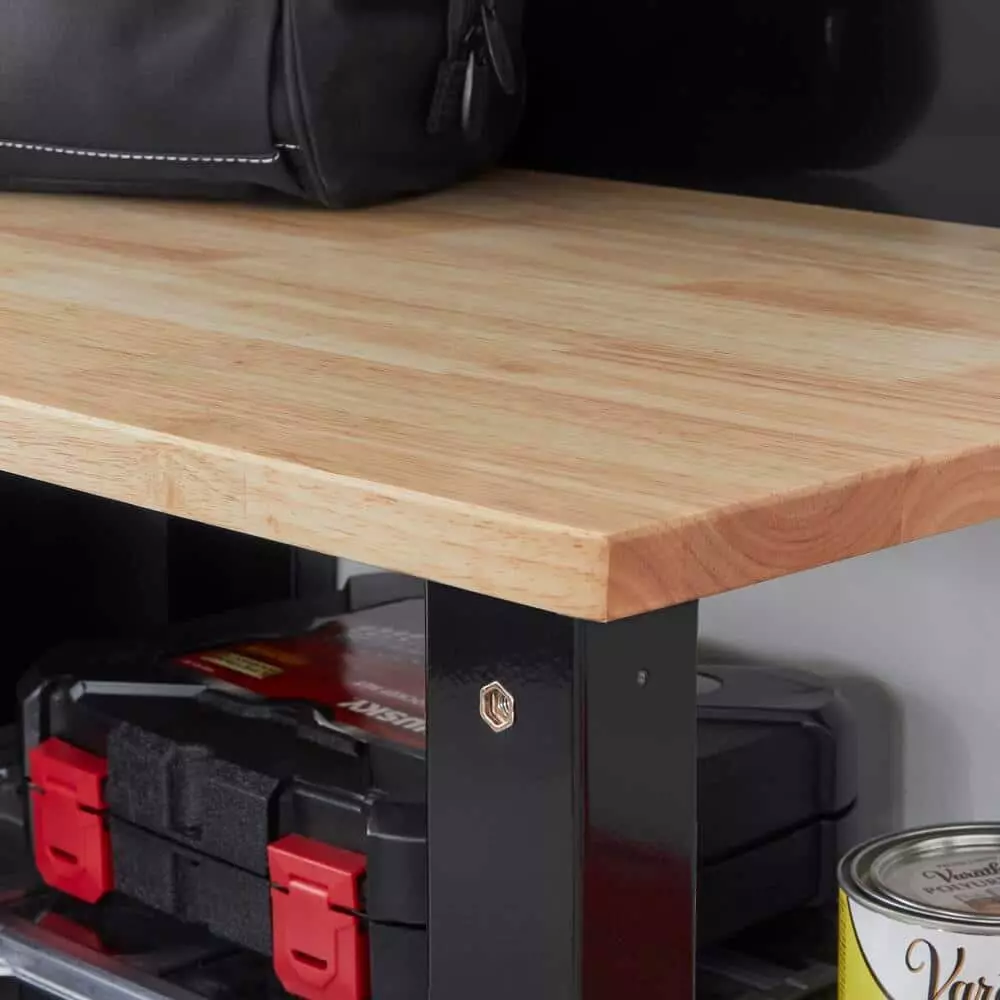 - Solid wood work surface is stain-resistant and easy to keep clean, and provides flat work surface for various tasks