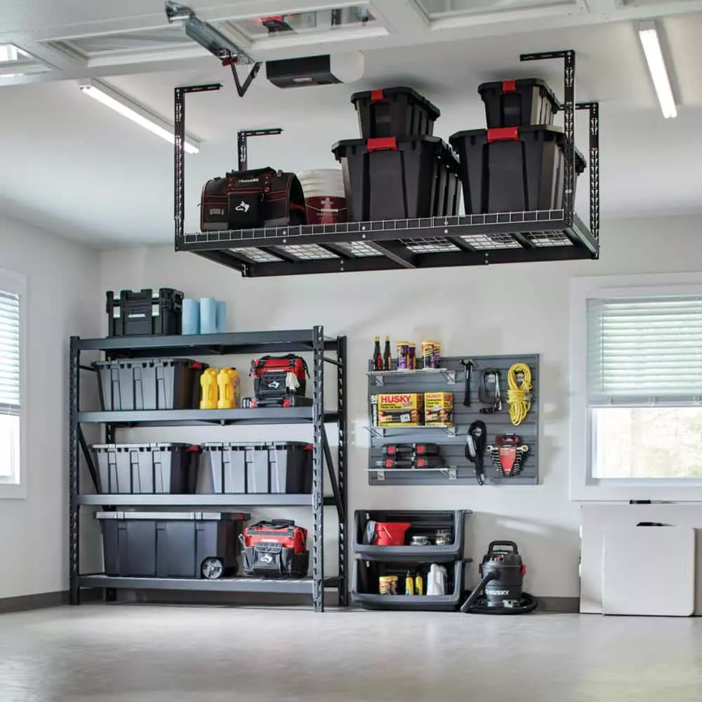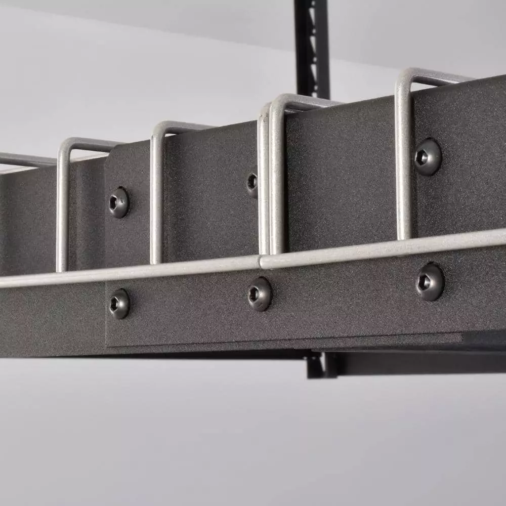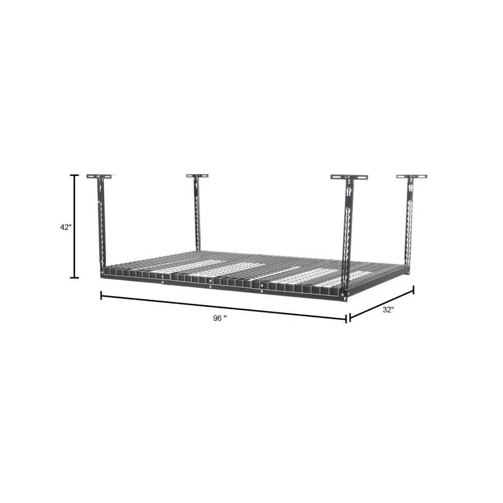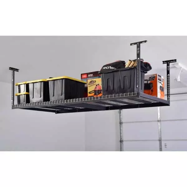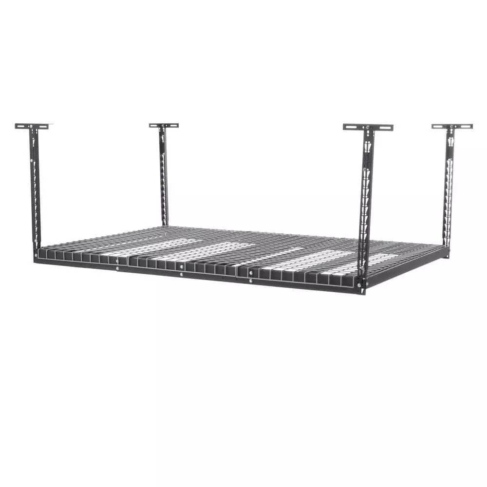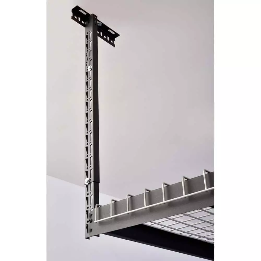 Organize your equipment, tools and more with this overhead ceiling mount garage rack. It offers adjustable shelving that can hold up to 600 lbs. For convenient installation, it comes with all hardware and instructions. Industrial-grade construction makes it built to last.