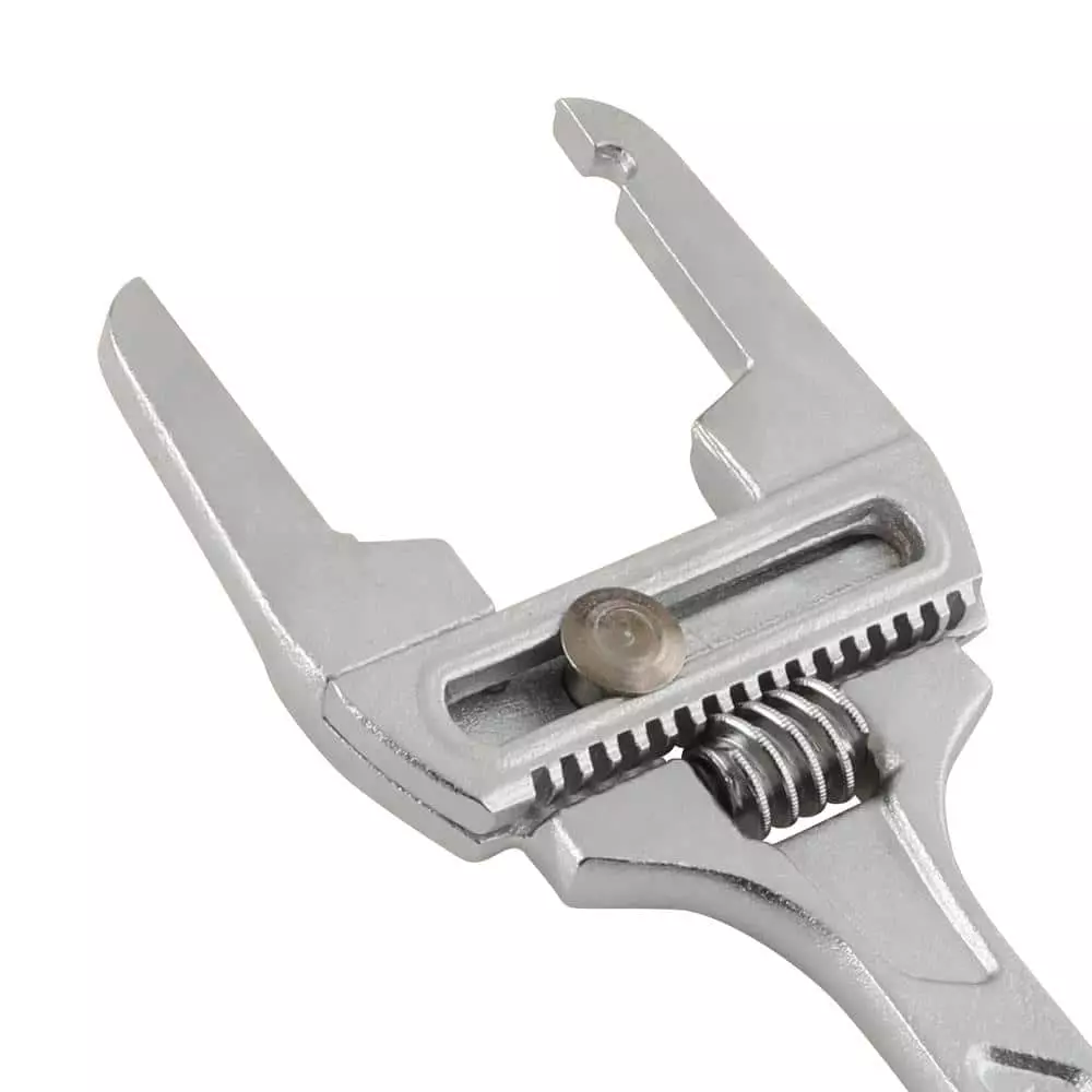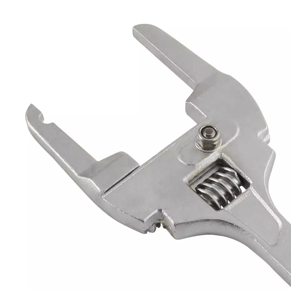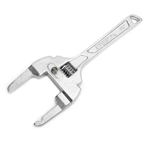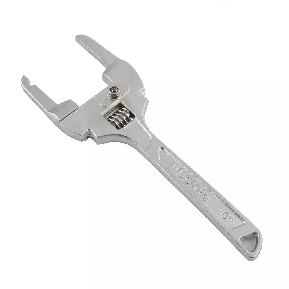 Husky’s Adjustable Plumbers Wrench is ideal for tightening and removing large slip nuts, spud nuts and basket strainers in a variety of applications. Its special wing nut-free design modifies jaw capacity from 1-3 in. A double-speed adjusting mechanism allows for customized sizing while a drop-forged structure offers durability. Built to last and backed by the Husky lifetime warranty.
