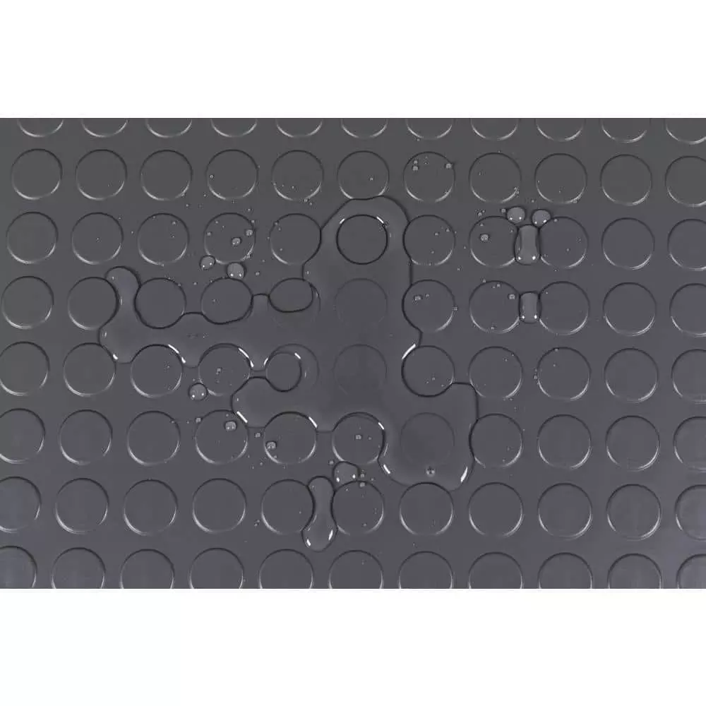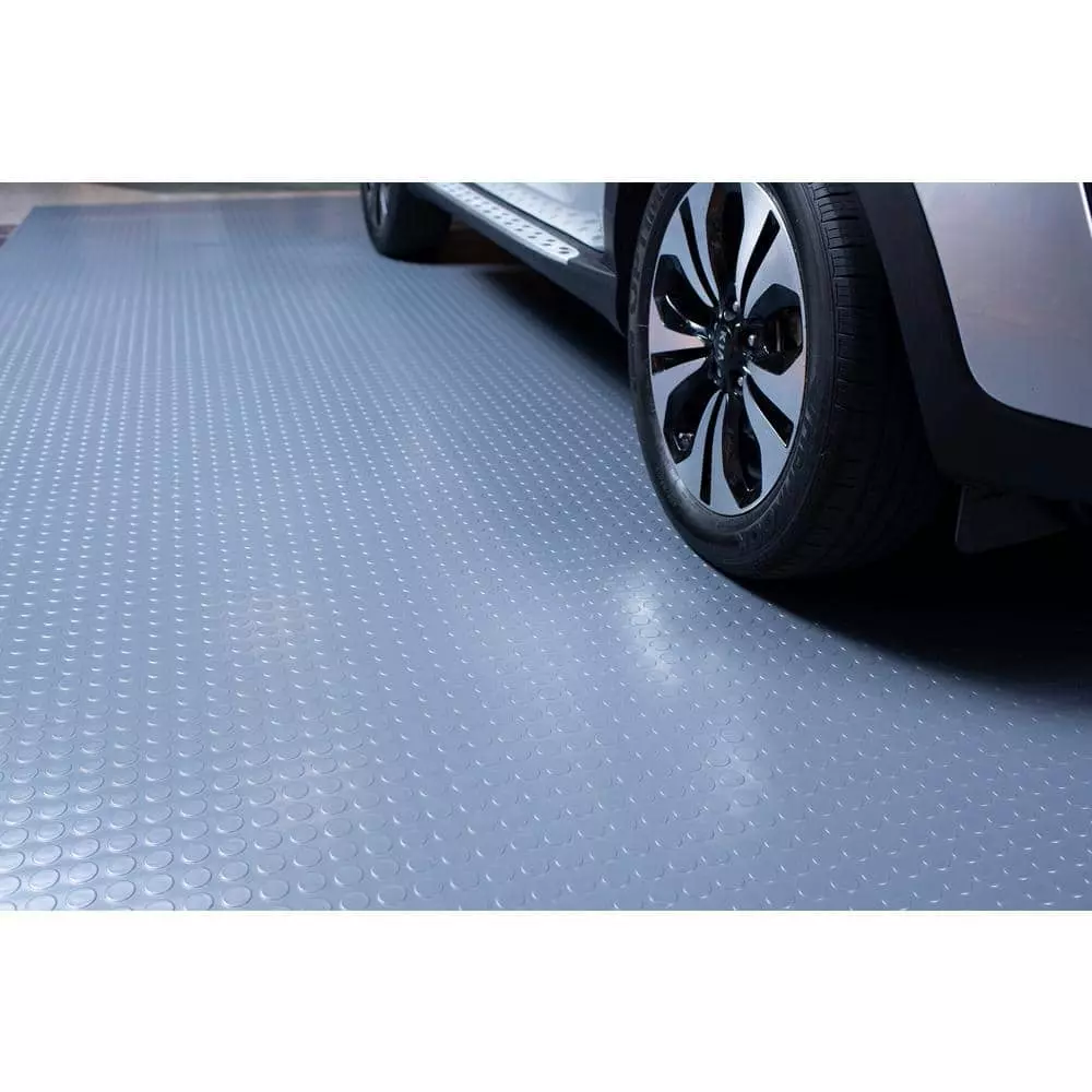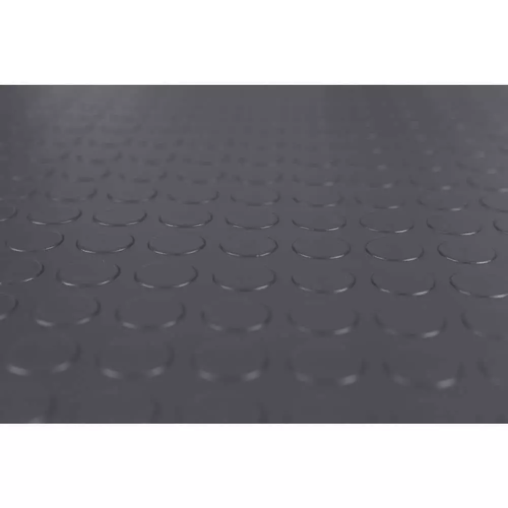 The Husky Coin Universal Flooring is manufactured from tough, specially formulated, solid polyvinyl and has a base thickness of 70 Mil (0.070 in.) and overall thickness of 105 Mil (0.105). This Husky flooring is resistant to most contaminants commonly found in garage and work environments. Helps prevent concrete deterioration, hides cracks and stains, prevents staining on newer floors and creates a moisture barrier. Husky flooring is 100% high quality polyvinyl, not layered with filler material that can crack, split, peel and deteriorate. Perfect DIY flooring. Just roll the product out onto your designated area and enjoy, or for a glue option use an acrylic base vinyl adhesive such as Roberts 2310 or 2315. The Husky flooring can be trimmed to a perfect fit using a straight edge and a utility knife. This product is ten feet wide and you order as many feet long as you need for a custom fit with no waste, up to 100 ft. long in a continuous roll. Orders over 100 ft. will be in 2 or more rolls. Tough enough to be used in the garage, attractive enough to be used everywhere; basements, laundry rooms, trailers, vehicles, schools, stores, workshops, warehouses, exercise rooms, offices and equipment rooms. Use this anywhere you need attractive high quality flooring.