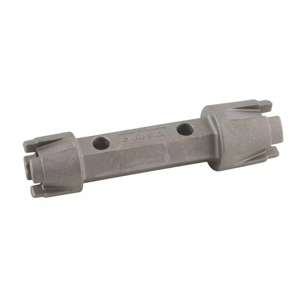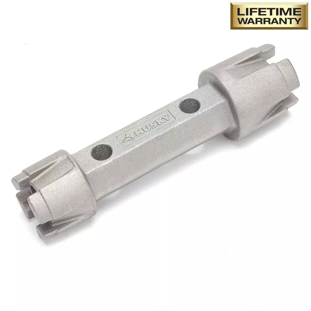 This Double Ended Tub Drain Wrench removes most old tub and shower drains and helps during replacement installations. A heavy-duty aluminum die-cast construction ensures long-lasting durability. Its double-ended design fits most tub drains with the small end for use on bar strainers and some lavatory drains. An adjustable wrench or screwdriver is required for proper operation. Backed by the Husky lifetime warranty for satisfaction guaranteed.