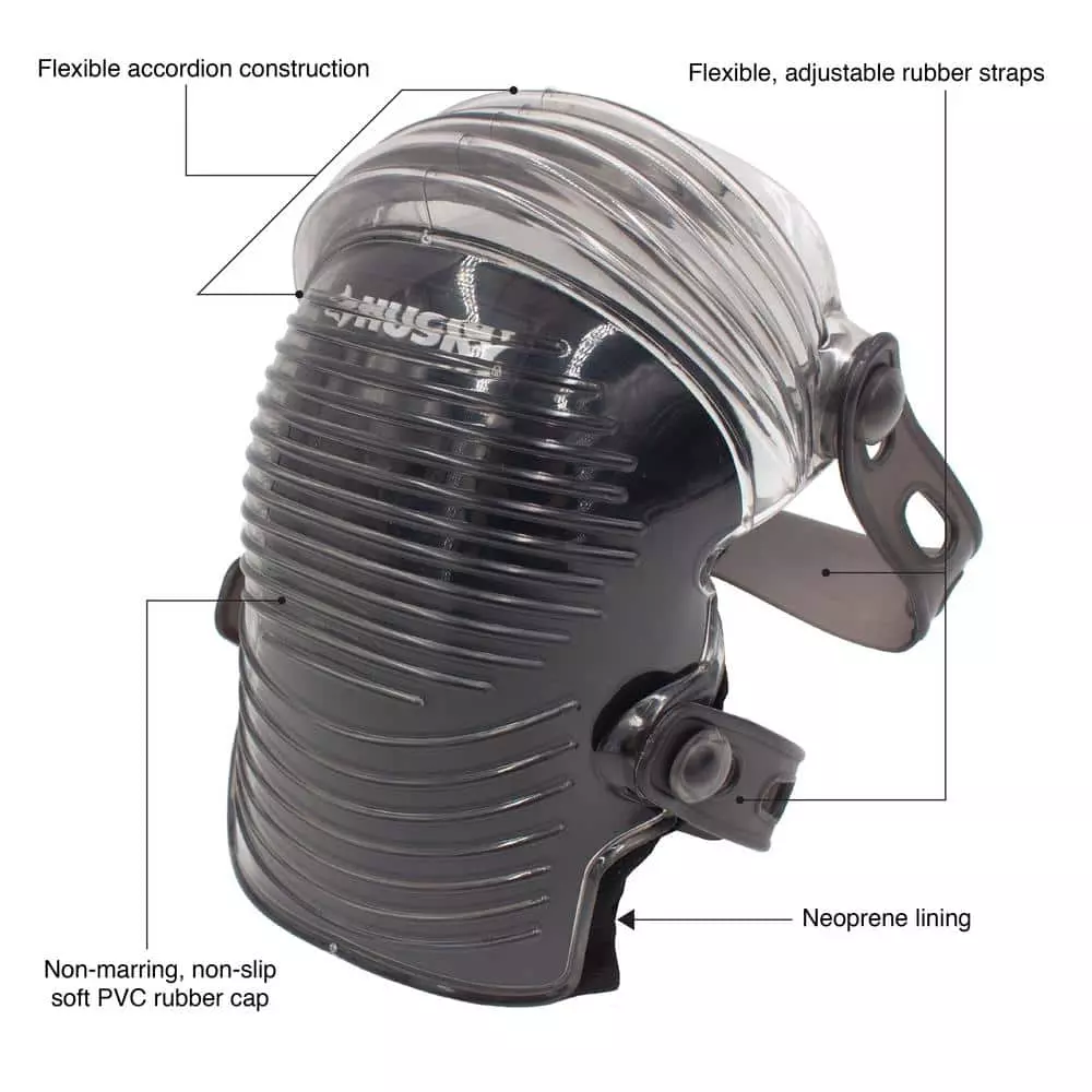 Representing the highest level in protective knee gear, the Gel Flexible Knee Pad features a gel padded body for professional level durability. The neoprene lining gives extra flexibility and support throughout the main body of the pad. This soft cap knee pad is ideal for non-marring applications with extra surface grip like concrete or roofing. The Gel Flexible Knee Pad has a PVC rubber cap that is water-resistant, allowing it to be fully washable and has a flexible accordion shape to promote flexibility. Designed for comfort, the 2 strap system provides additional support behind the knee. The rubber straps are adjustable and can be replaced.