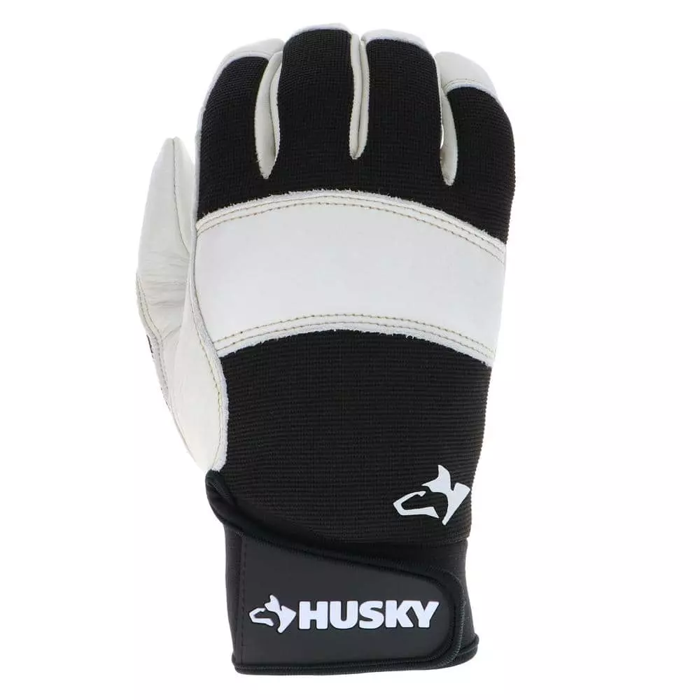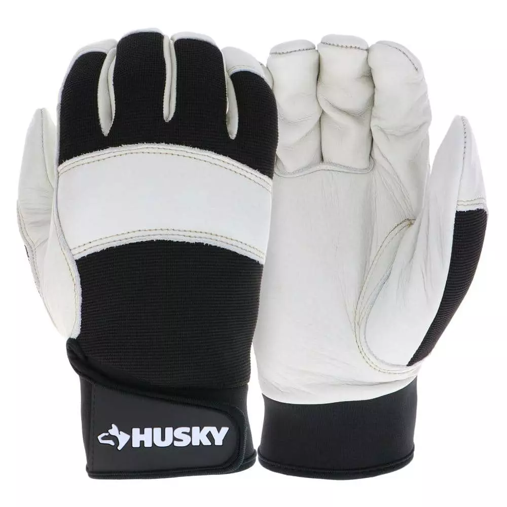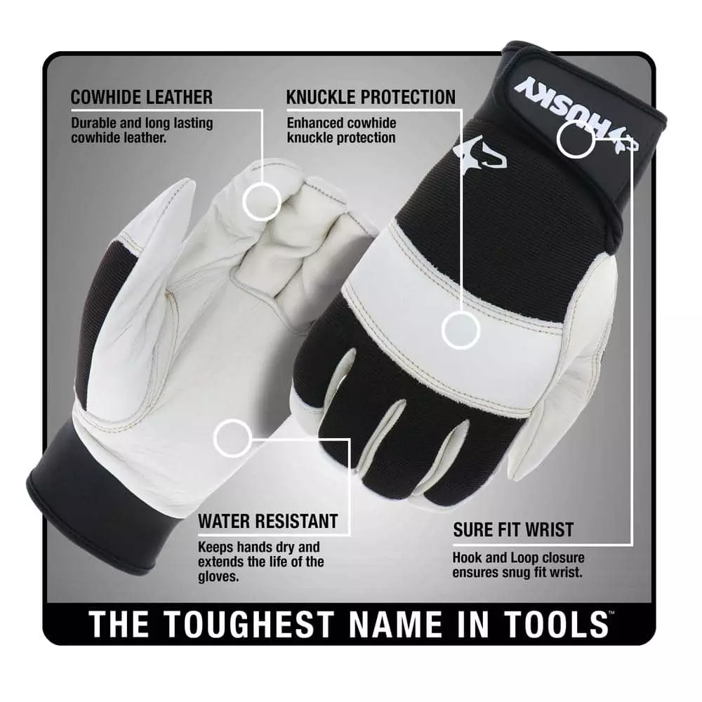 Husky Large Grain Cowhide Water Resistant Leather Performance Work Glove with Spandex Back