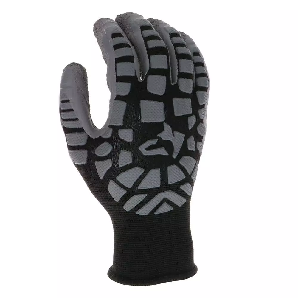 This glove has a gray nylon shell that is light weight and breathable. Latex dip provides excellent grip in both dry and wet conditions. Low profile latex TPR offers back of hand protection for work in small and tight spaces.
