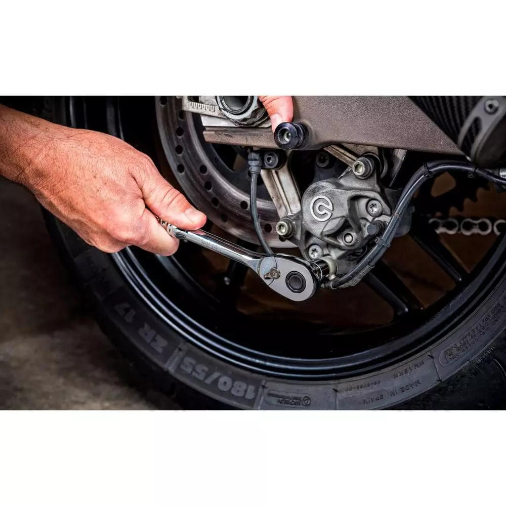 - Quick release button allows sockets and drive tools to be easily removed from the ratchet