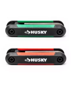 The Husky 17-Piece Mini Precision Folding Hex Key Set features an 9-Piece SAE and 8-Piece Metric alloy steel for strength and durability. The tools have chamfered edges to help guide the tool onto the fastener. The keys also fold up into the holder for easy storage.