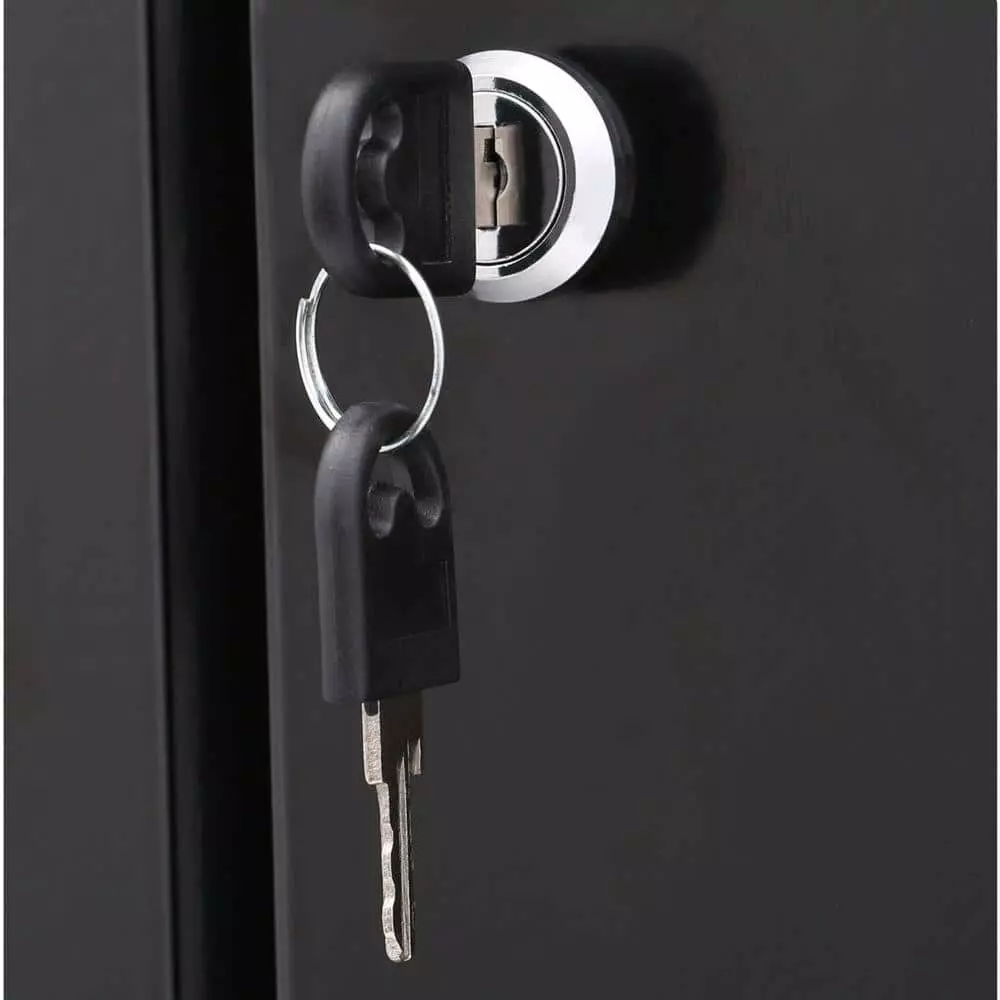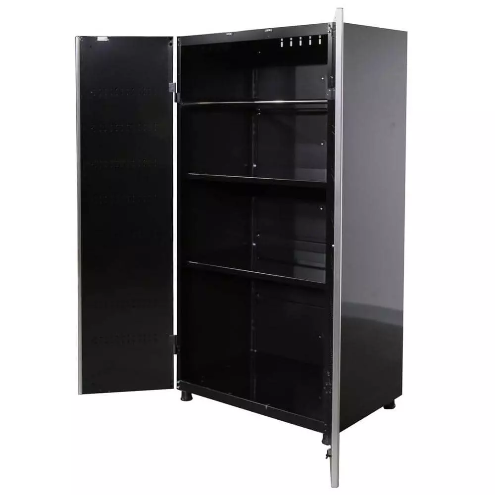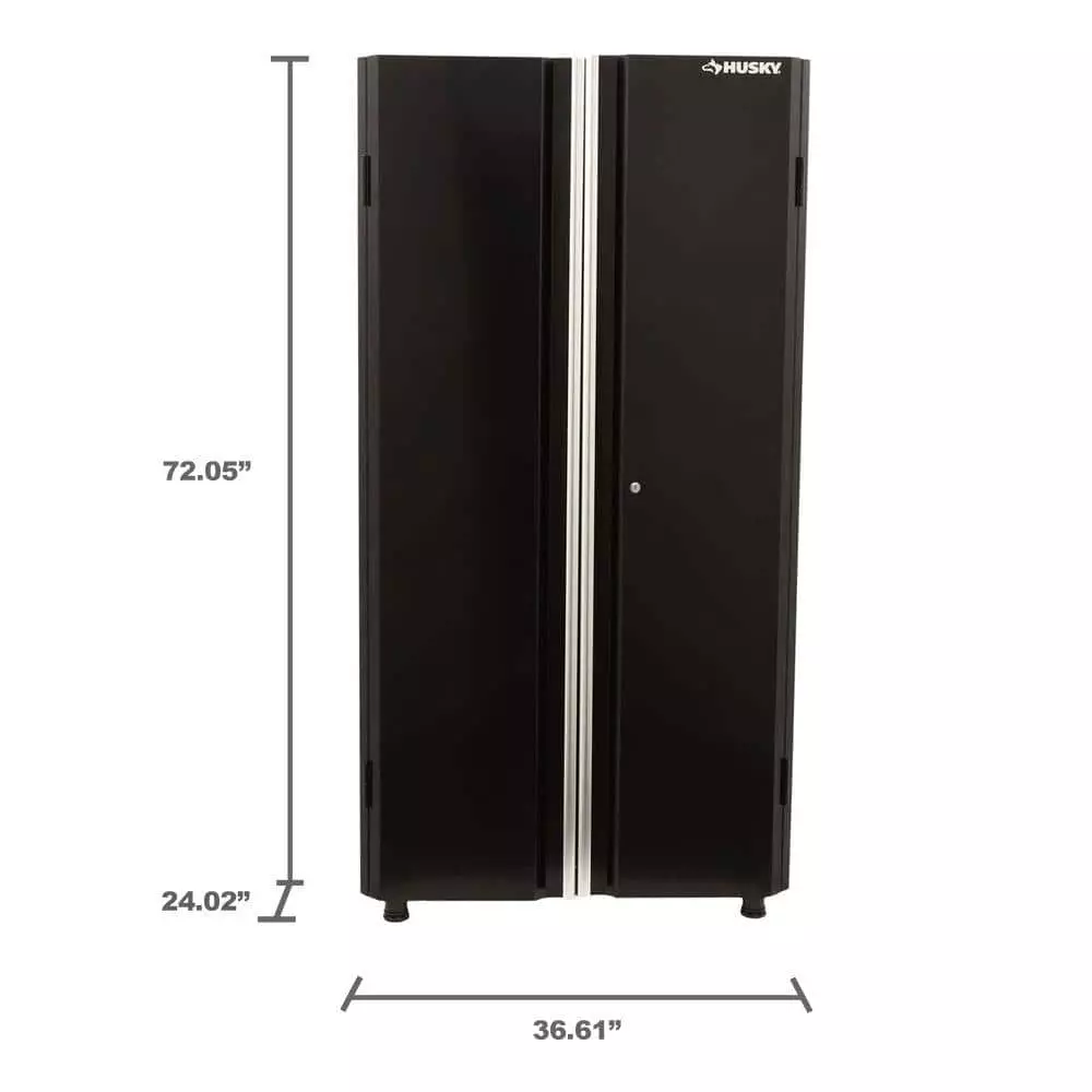Easily install this Ready-to-Assemble 24-Gauge Steel Garage Gear Cabinet in Black (36 in. W x 72 in. H x 24 in. D). Prepare for an easy installation process. The 24-gauge steel material makes this a durable option for your home. Customize the look and function of your cabinet by adjusting the two shelves