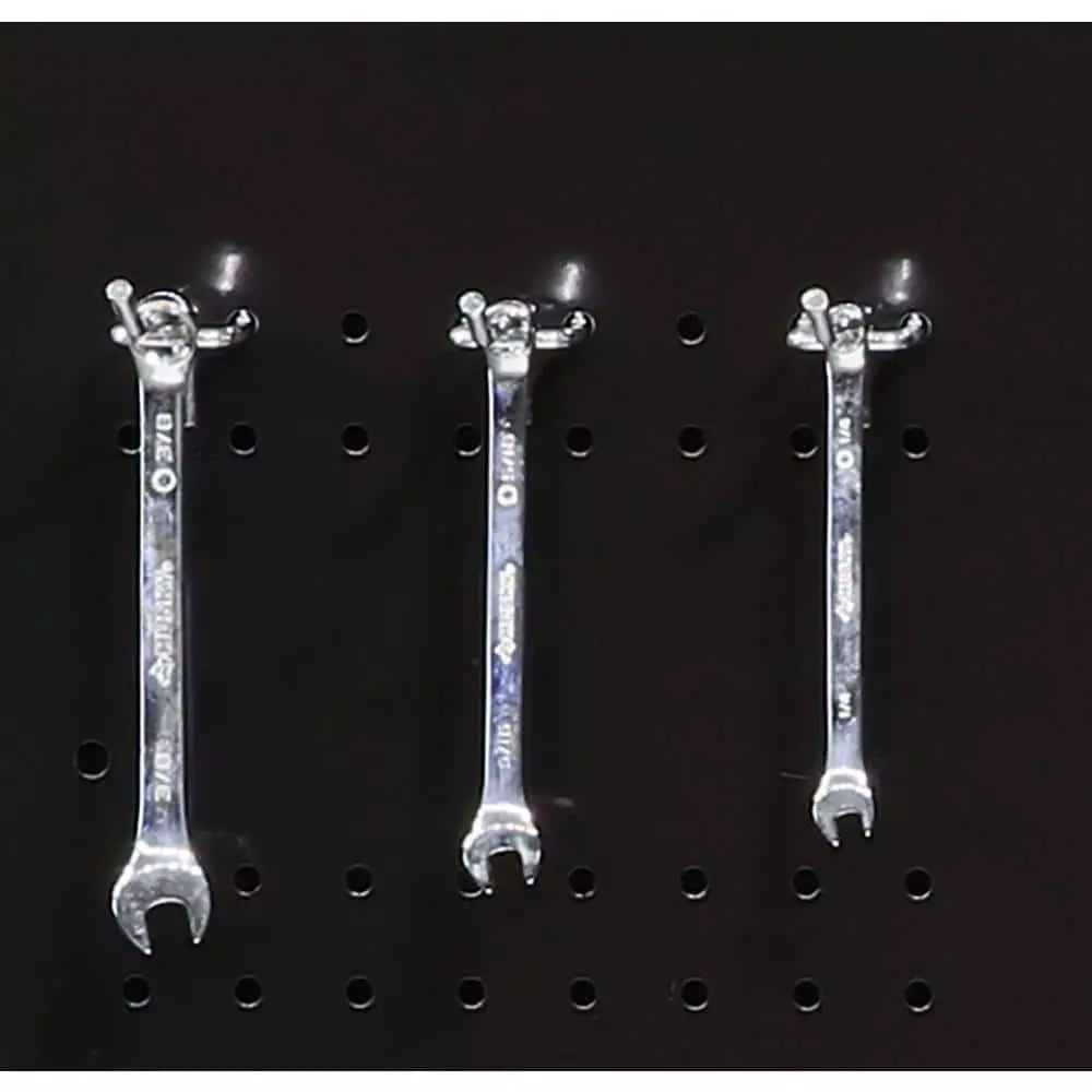 - Sturdy double-wall doors include interior pegboard panels for additional storage (peg hooks sold separately)
