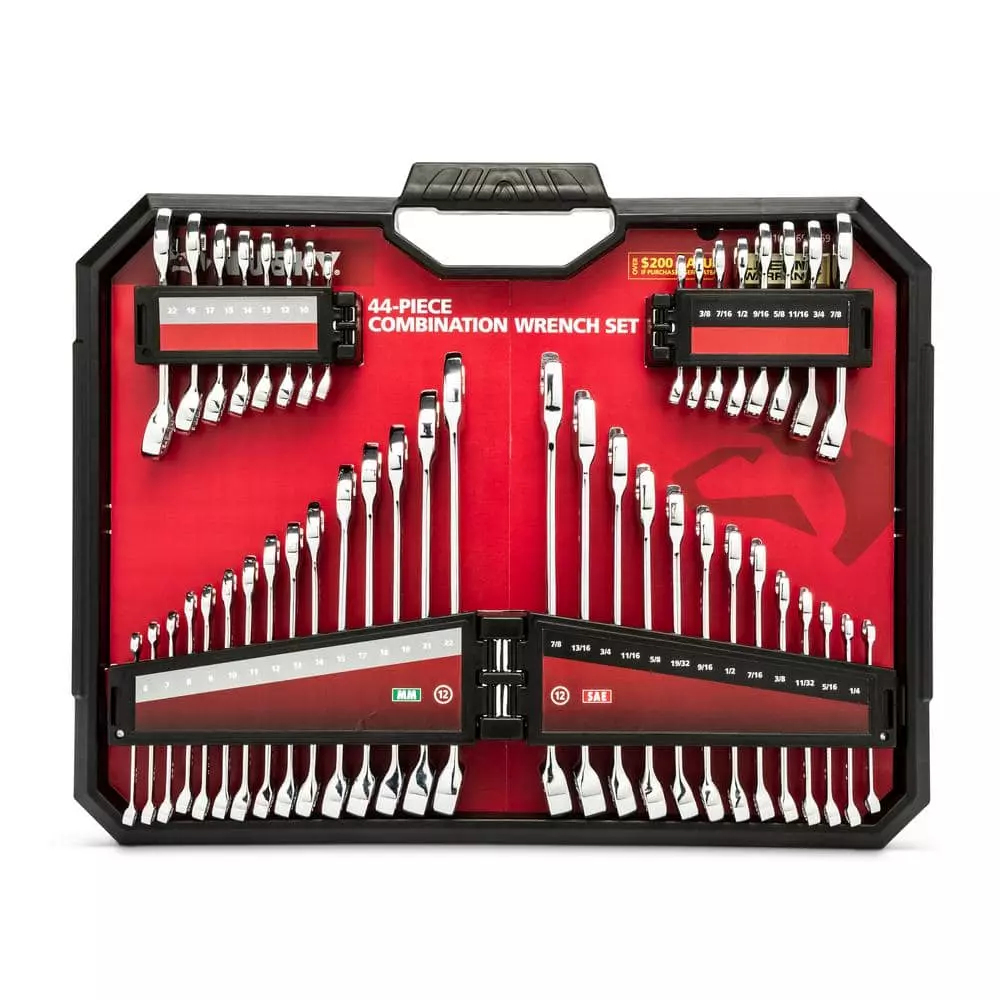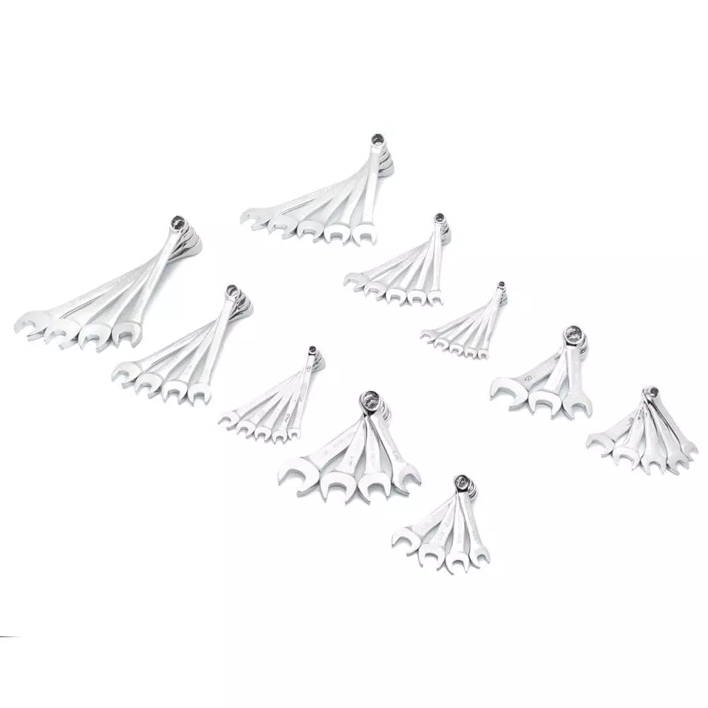 - Includes (28) combination wrenches – metric: 6 mm, 7 mm, 8 mm, 9 mm, 10 mm, 11 mm, 12 mm, 13 mm, 14 mm, 15 mm, 17 mm, 18 mm, 19 mm, 21 mm, 22 mm and SAE: 1/4 in., 5/16 in., 11/32 in., 3/8 in., 7/16 in., 1/2 in., 9/16 in., 19/32 in., 5/8 in., 11/16 in., 3/4 in., 13/16 in., 7/8 in. and includes (16) stubby combination wrenches – metric: 10 mm, 12 mm, 13 mm, 14 mm, 15 mm, 17 mm, 19 mm, 22 mm and SAE: 3/8 in., 7/16 in., 1/2 in., 9/16 in., 5/8 in., 11/16 in., 3/4 in., 7/8 in.