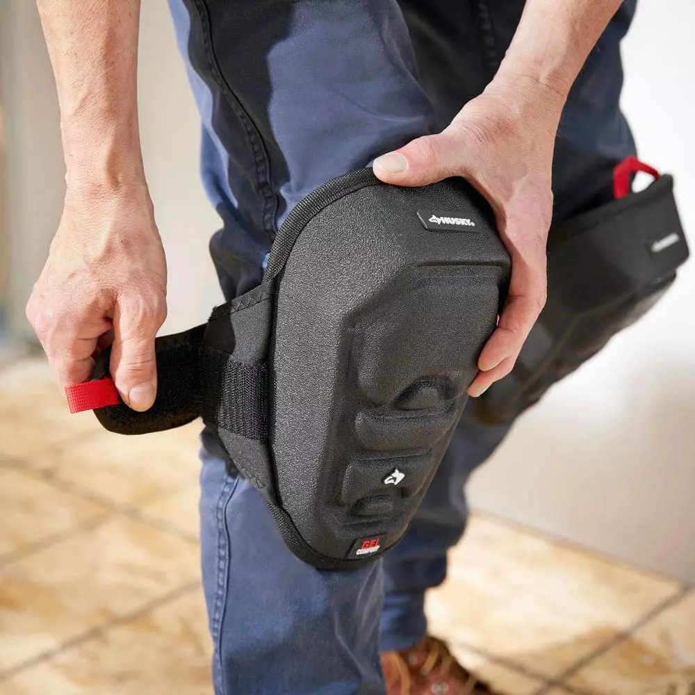 The Husky Soft Cap Gel/Foam Non-Marring knee pads are designed to provide comfort and protection while you work. The cap is designed with a rugged PVC material that can stand up to rough or wet terrain yet is soft enough for work on wood flooring. The custom molded non-marring cap can also be hand-washed for easy clean-up. The bonded gel/foam padding provides all-day comfort and the wide comfort neoprene strap stays in place and won’t bind up behind your knees. Recommended applications are for hardwood, laminate, tile, landscaping, gardening and more.
